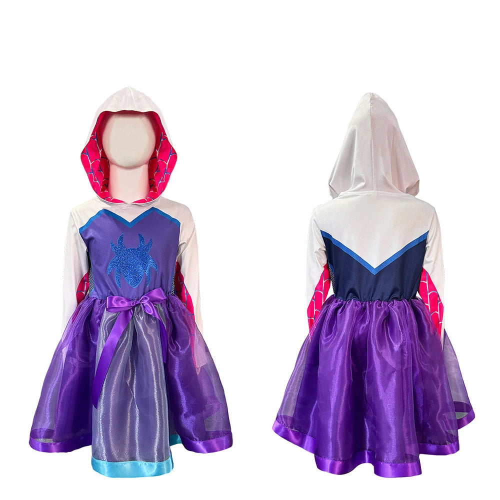 Let your little hero swing into action with the Kids Spider-Man Cosplay Costume — featuring the stylish Gwen Ghost Spider design, perfect for girls who love superheroes, dress-up, and Halloween fun.
