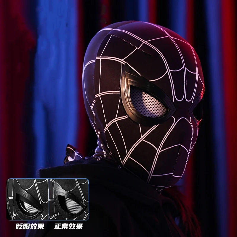 Spider-Man Hood Mask – Movable Eyes with Electric Light, Spooky Cosplay Headgear for Halloween, Christmas, and Playtime Gifts